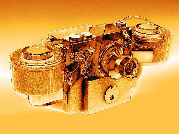 Doppellamellenverschluss, nebenstehendem Belichtungssensor und dem Steuergerät mit Belichtungsautomatik