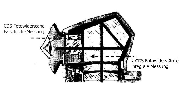 Alpa 9D Anordnung von drei Kleinflaechen - Fotowiderstaenden am Prisma neben und ueber dem Okular